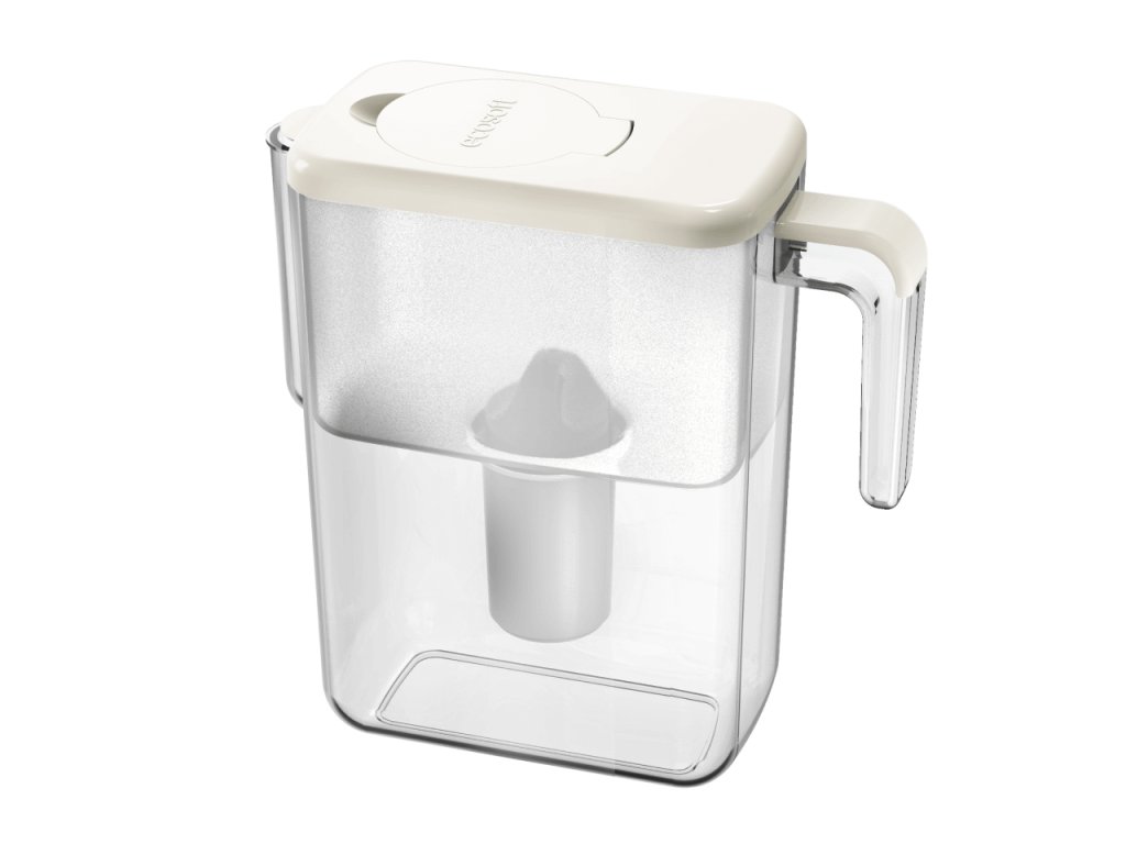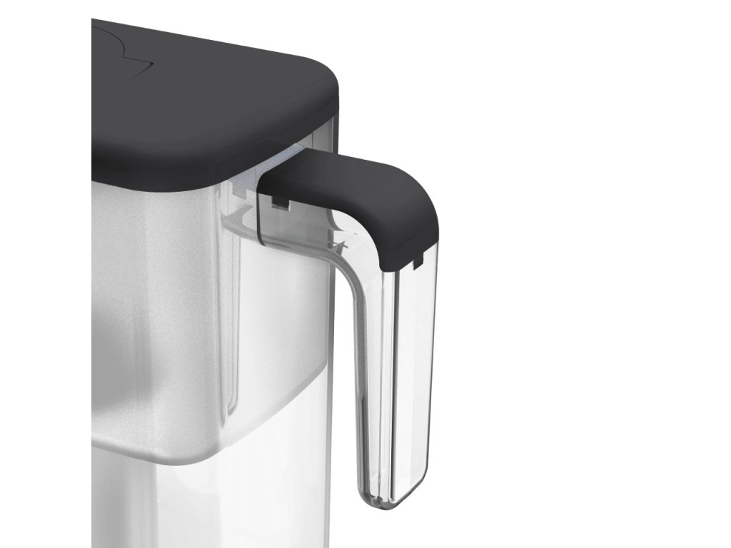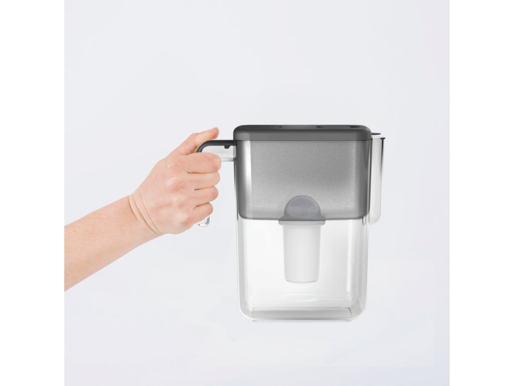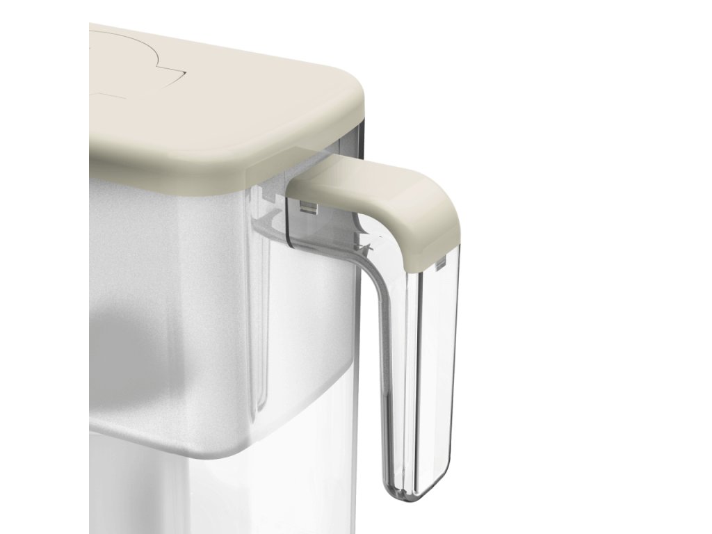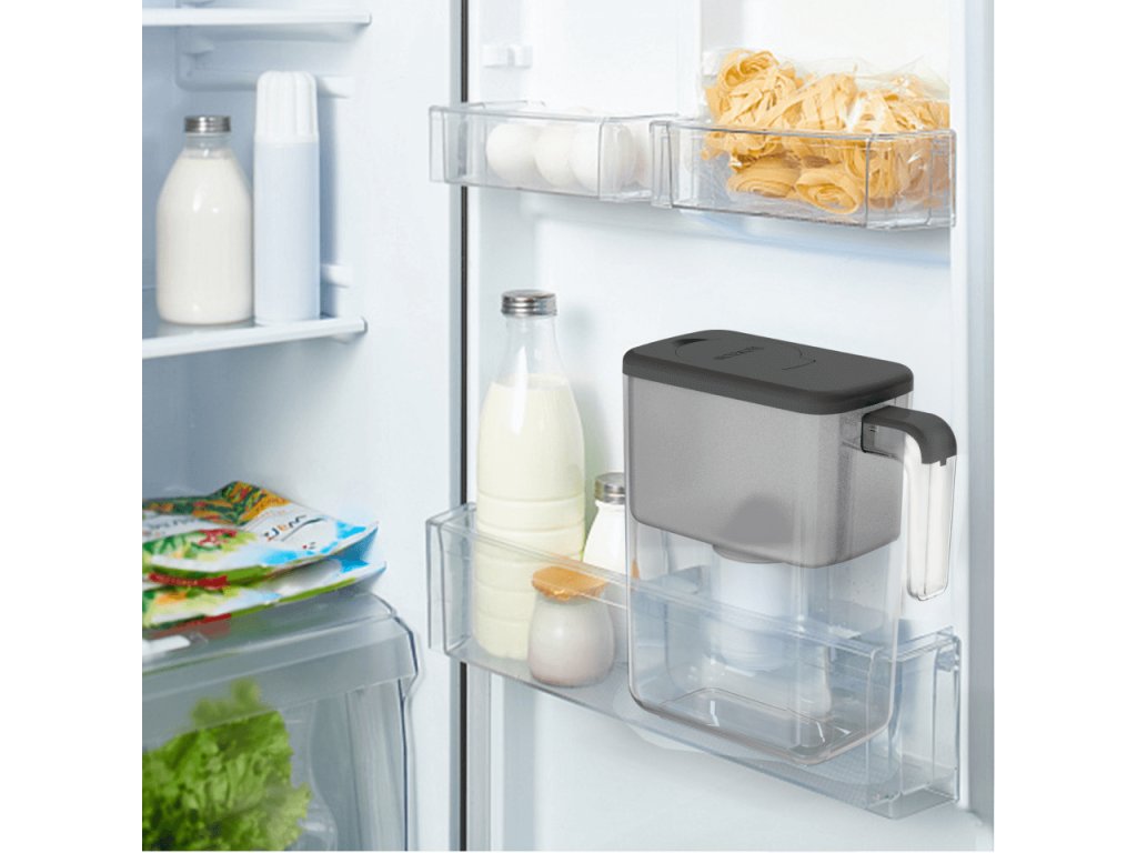 Der Kunststoff in Lebensmittelqualität nimmt keine Gerüche auf und ist temperaturbeständig, was die Aufbewahrung der Kanne im Kühlschrank ermöglicht. Dies macht die Filterkanne Slim zu einer zuverlässigen und sicheren Wahl für den täglichen Gebrauch.