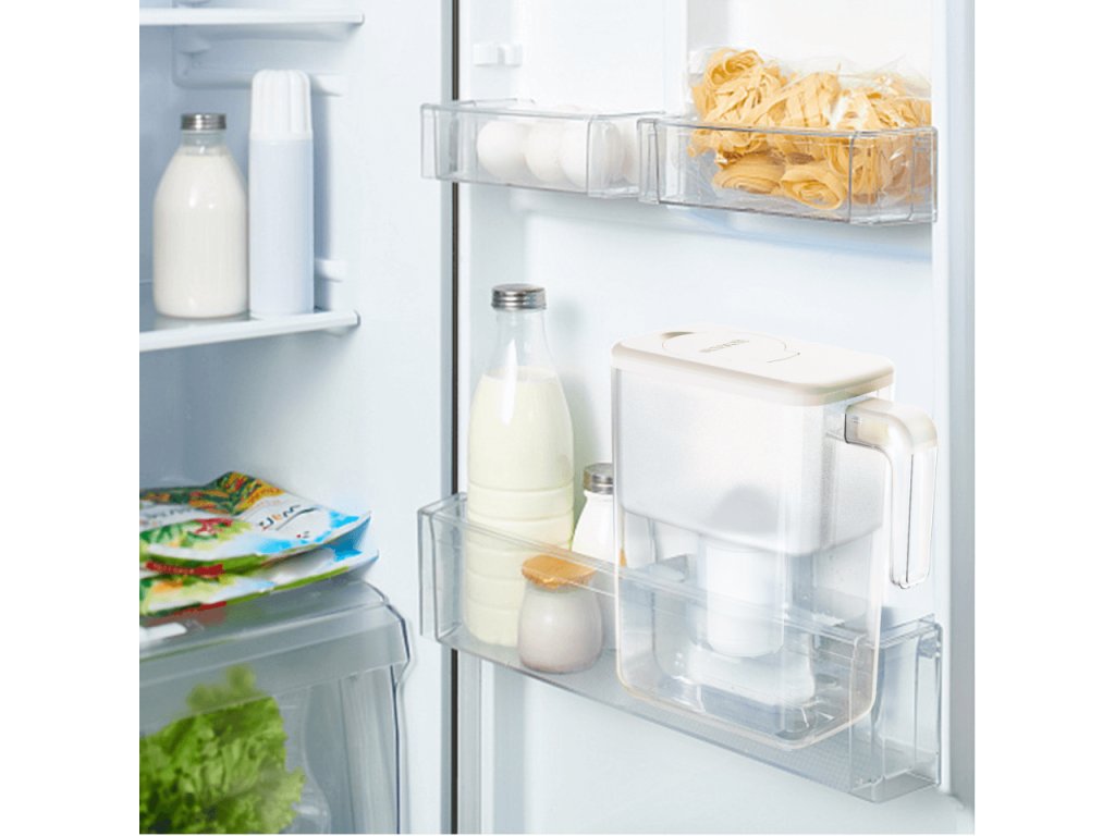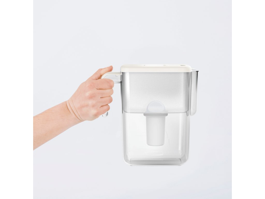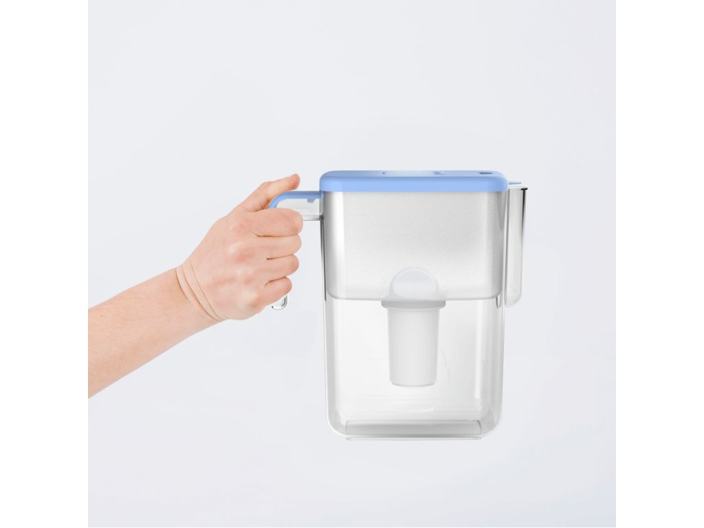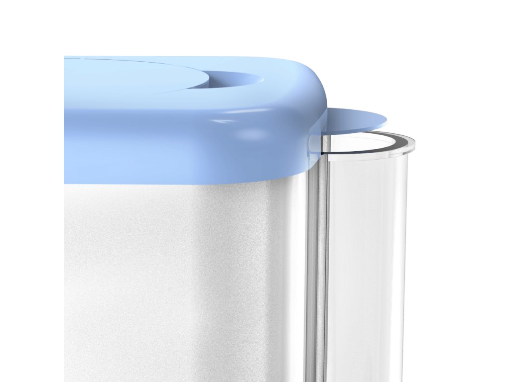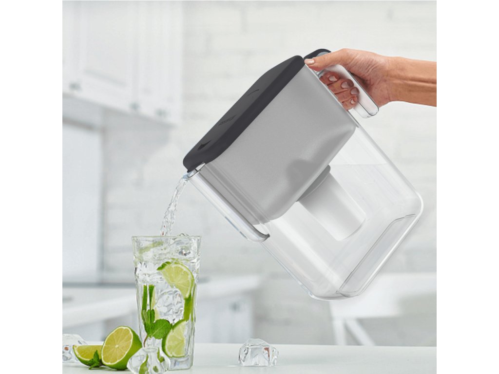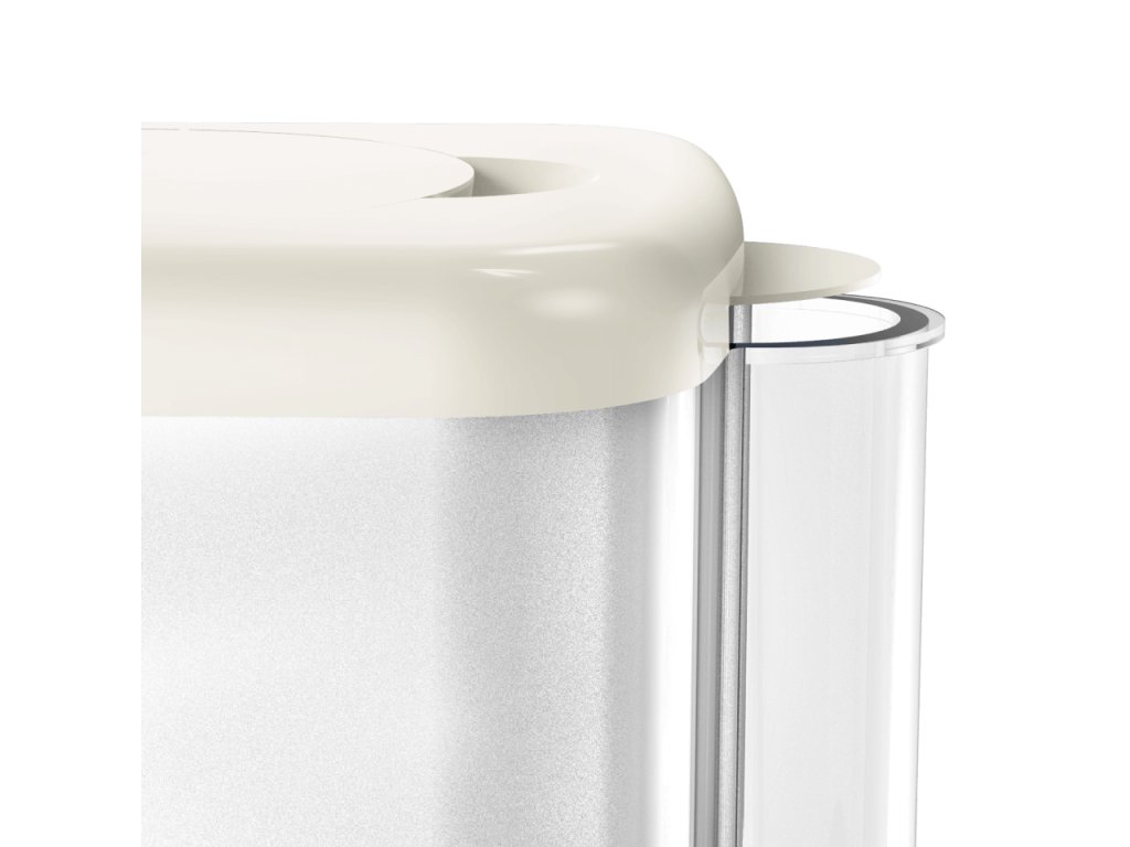Der Kunststoff in Lebensmittelqualität nimmt keine Gerüche auf und ist temperaturbeständig, was die Aufbewahrung der Kanne im Kühlschrank ermöglicht. Dies macht die Filterkanne Slim zu einer zuverlässigen und sicheren Wahl für den täglichen Gebrauch.