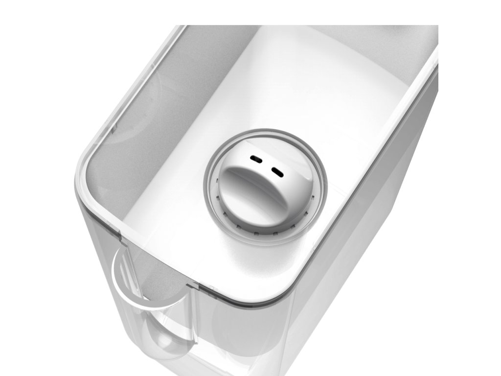 Diese Kanne muss nicht an die Wasserversorgung angeschlossen werden und ihre Bedienung ist sehr einfach. Gießen Sie einfach Leitungswasser in den Einfülltrichter der Kanne und erhalten Sie im Handumdrehen sauberes, frisches Wasser ohne Chlorgeruch.