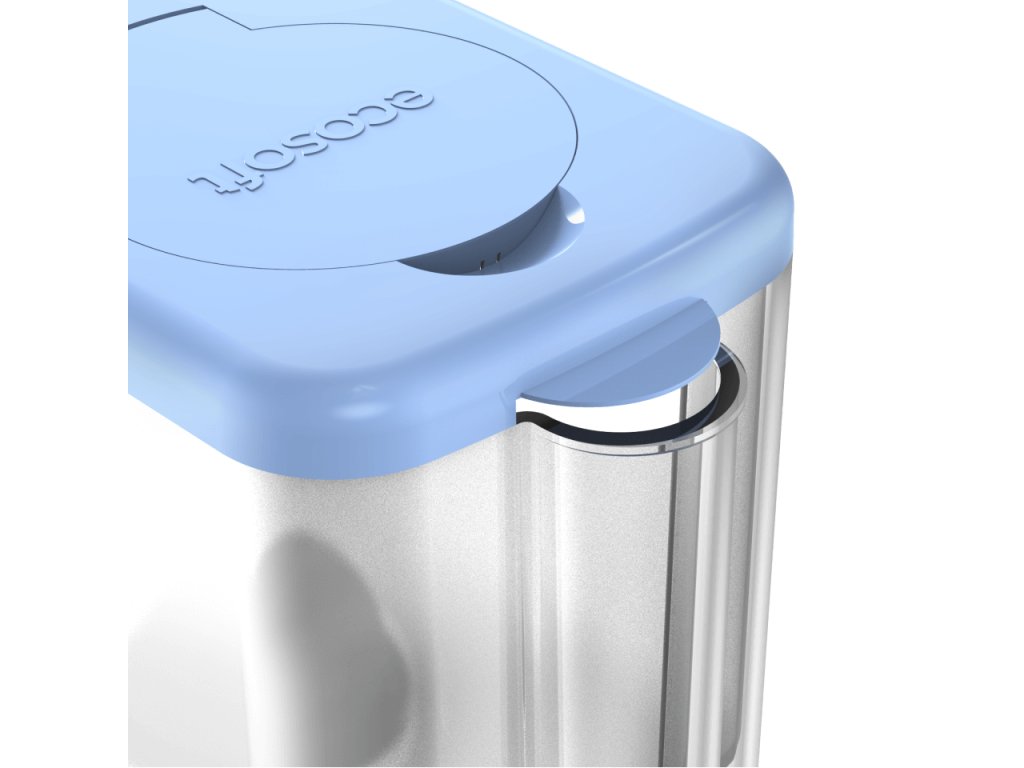 Die kompakte Filterkanne ECOSOFT SLIM ist eine stilvolle und funktionale Wahl für die einfache Wasserfiltration in Ihrem Zuhause. Das Gesamtvolumen der Kanne beträgt 3,5 l, davon sind 1,7 l das Volumen für gefiltertes Wasser, was ungefähr sieben Gläsern Wasser entspricht. Zudem passt die Kanne dank ihrer kompakten Abmessungen hervorragend in die Kühlschranktür, was Platz in der Küche spart.