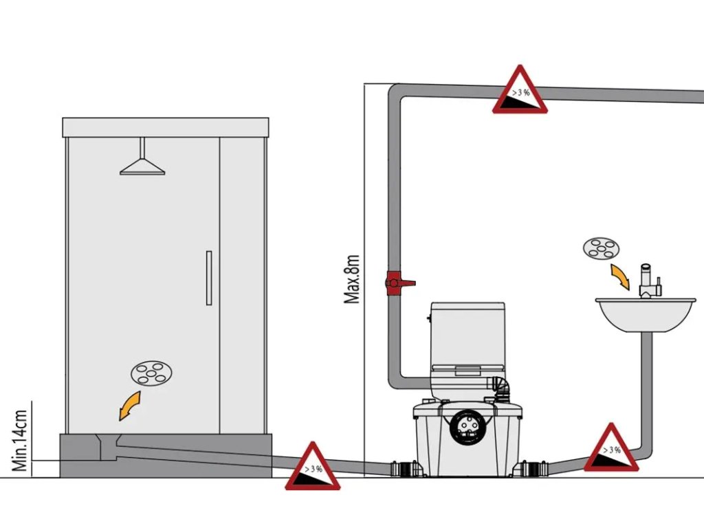 Das Gerät ist für das Abpumpen von Abwasser aus dem WC und drei weiteren Anschlüssen für den Wasserablauf vorgesehen, z. B. aus Duschkabine, Waschbecken, Bidet oder Waschmaschine. Diese Pumpenhebeanlage ist ausschließlich für den Hausgebrauch bestimmt. Sie arbeitet mit Flüssigkeiten im Temperaturbereich von 4 °C bis 90 °C.