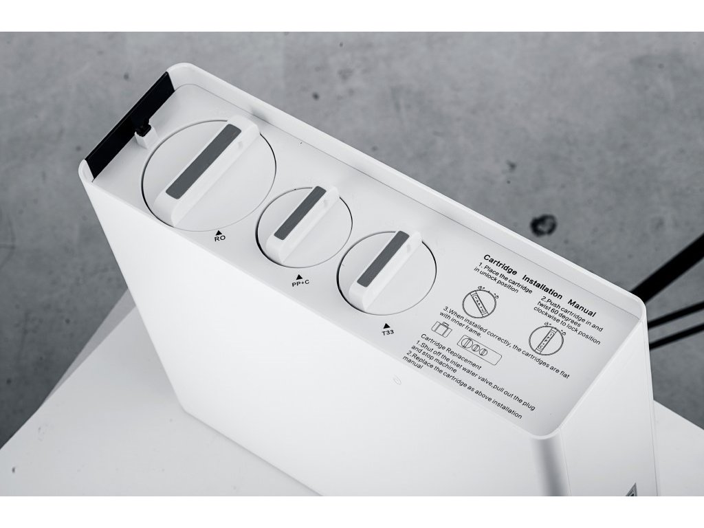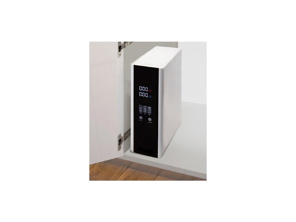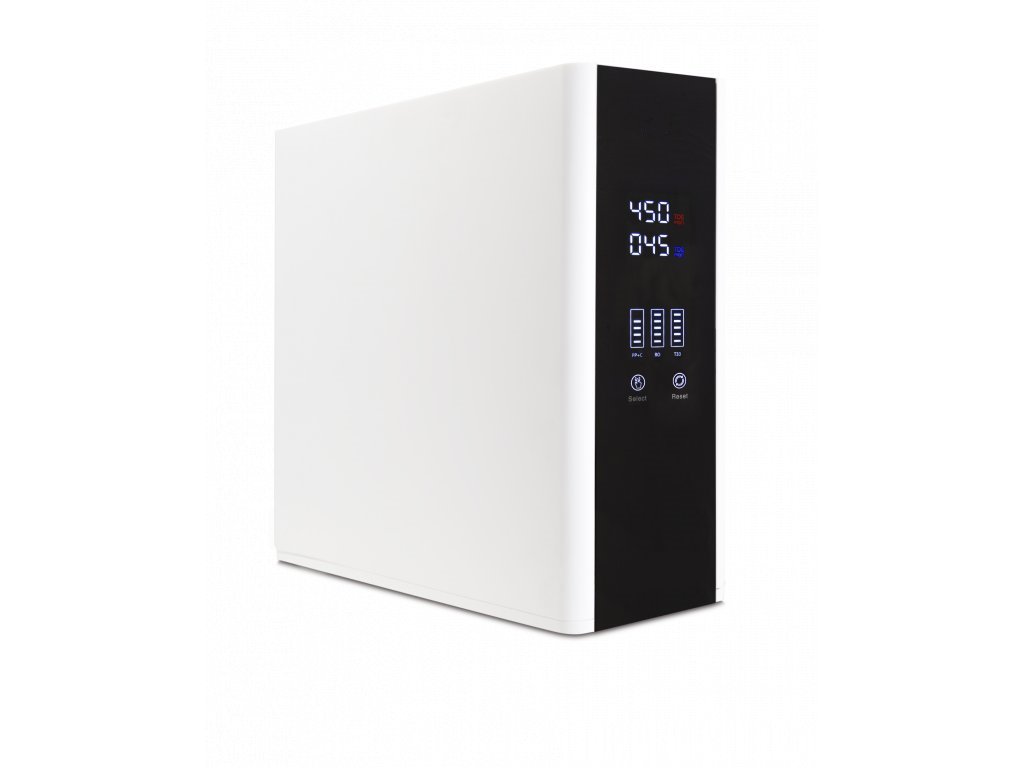 Es verfügt über ein einfach zu bedienendes digitales Display, auf dem Sie alle notwendigen Informationen über den Betrieb des Geräts finden. Es zeigt die Wasserqualität am Ein- und Ausgang oder den Zustand der einzelnen Filtereinsätze an, gegebenenfalls auch die Notwendigkeit ihres Austauschs.