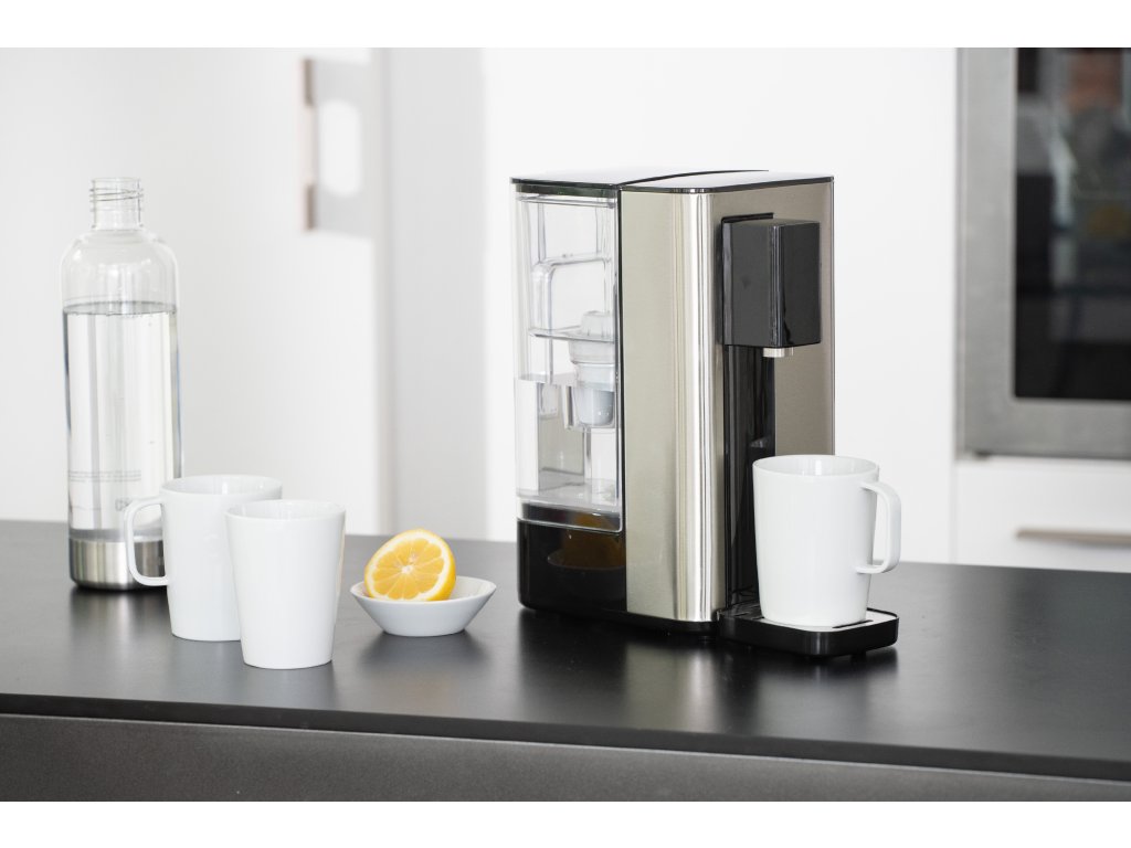 Er bietet schnelle Zubereitung von frischem heißem Wasser in Sekundenschnelle und ermöglicht die Einstellung von drei verschiedenen Temperaturen, geeignet zum Beispiel für die Zubereitung von Tee, Kaffee oder Kindergetränken. Bietet Wasser in Raumtemperatur, Wasser mit 85°C und 100°C und ist mit einer Sicherheitsverriegelung gegen Verbrühungen ausgestattet.